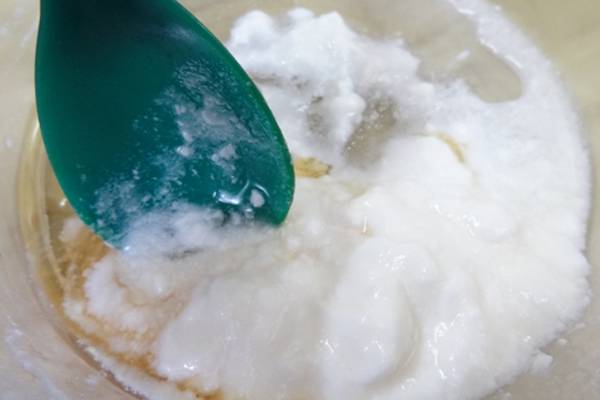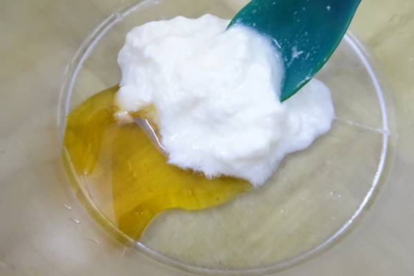 الخطوة الثانية : أضف معلقتين من الزبادي( زبادي جاهز أو مصنوع في البيت)