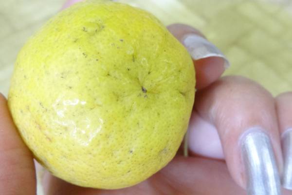 الخطوة الخامسة: احضري ليمونة متوسطة الحجم , و هذه الليمونة احضرتها من حديقتي الخاصة .